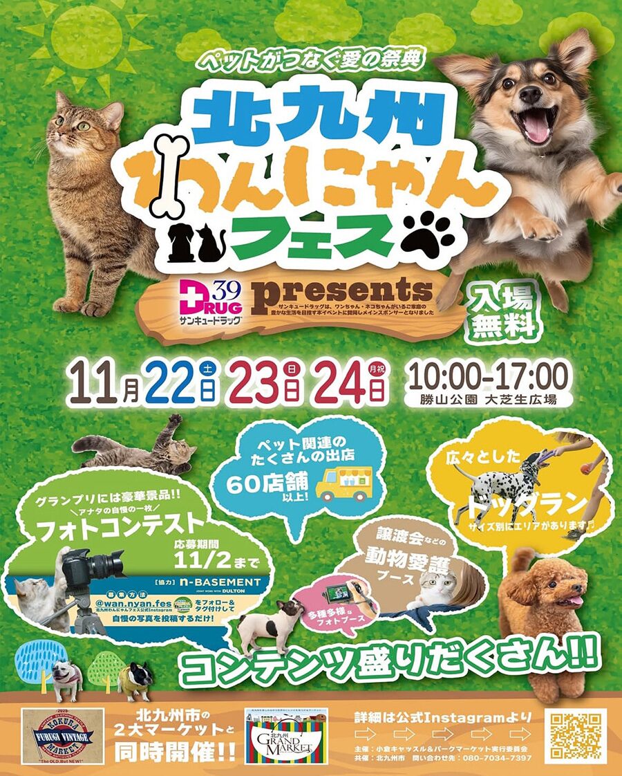 北九州わんにゃんフェス|11月22日(土)〜11月24日(月・祝)勝山公園で開催!犬猫好き必見の大型ペットフェス🐶🐱